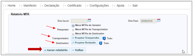 - 4.8. Gerando relatório de MTRs