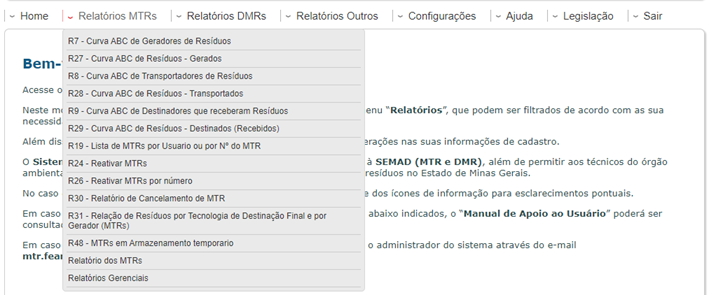 Para acessar a página oficial da SEMAD sobre o Sistema MTR, com demais materiais de apoio aos usuários, clique aqui.