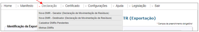 No período de preenchimento da DMR, o gerador ou destinador que precisa preencher a DMR deverá, uma vez logado no sistema com seu perfil, acessar o menu “Declaração” e selecionar a opção correspondente de “Nova DMR” para emitir o seu relatório semestral. Não há DMR para os perfis de Armazenador Temporário e Transportador no sistema mineiro. O usuário poderá selecionar “Nova DMR – Gerador (Declaração de Movimentação de Resíduos)” ou “Nova DMR como Destinador (Declaração de Movimentação de Resíduos)”, dependendo de seu perfil.